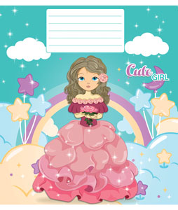 Серія "Girls" 12 аркушів у косу лінійку. Обкладинка – чистоцелюлозний картон, 200гр. Внутрішній блок – офсет.