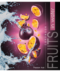 Серія "Фрукти у воді" 96 аркушів у клітинку. Обкладинка – чистоцелюлозний картон, 200гр. Внутрішній блок – офсет.