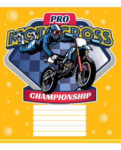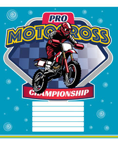Серія "Motocross" 12 аркушів у клітинку. Обкладинка – чистоцелюлозний картон, 200гр. Внутрішній блок – офсет.