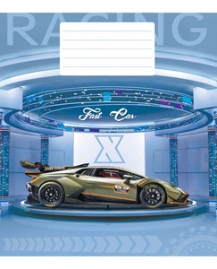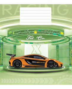 Серія "Fast-car" 12 аркушів у клітинку. Обкладинка – чистоцелюлозний картон, 200гр. Внутрішній блок – офсет.