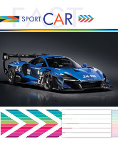 Серія "Sport-Cars" 12 аркушів у клітинку. Обкладинка – чистоцелюлозний картон, 200гр. Внутрішній блок – офсет.