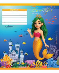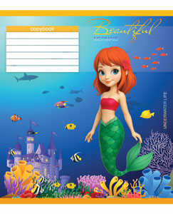 Серія " Beautiful mermaid " 12 аркушів у клітинку. Обкладинка – чистоцелюлозний картон, 200гр. Внутрішній блок – офсет.