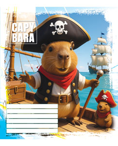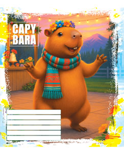 Серія "Capybara" 12 аркушів у клітинку. Обкладинка – чистоцелюлозний картон, 200гр. Внутрішній блок – офсет.