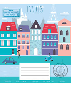 Серія " Painted city " 12 аркушів у лінійку. Обкладинка – чистоцелюлозний картон, 200гр. Внутрішній блок – офсет.