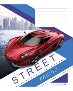 Серія "Street racing" 12 аркушів у лінійку. Обкладинка – чистоцелюлозний картон, 200гр. Внутрішній блок – офсет.