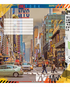 Серія "New York" 96 аркушів у клітинку. Обкладинка – чистоцелюлозний картон, 200гр. Внутрішній блок – офсет.
