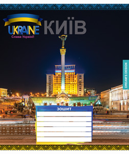 Серія "Київ" 12 аркушів у клітинку. Обкладинка – чистоцелюлозний картон, 200гр. Внутрішній блок – офсет.
