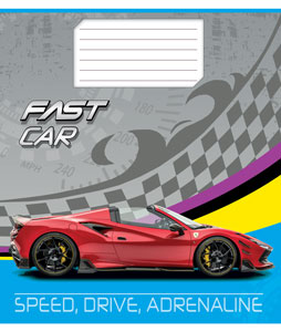 Серія "Fast car" 12 аркушів у клітинку. Обкладинка – чистоцелюлозний картон, 200гр. Внутрішній блок – офсет.