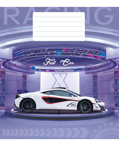 Серія "Fast-car" 12 аркушів у клітинку. Обкладинка – чистоцелюлозний картон, 200гр. Внутрішній блок – офсет.