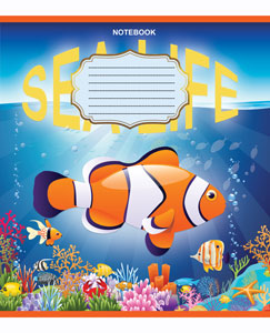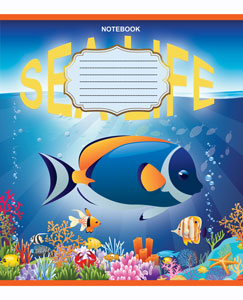 Серія "Sea Life" 12 аркушів у клітинку. Обкладинка – чистоцелюлозний картон, 200гр. Внутрішній блок – офсет.