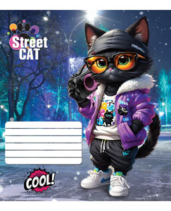 Серія "Cool cat" 12 аркушів у клітинку. Обкладинка – чистоцелюлозний картон, 200гр. Внутрішній блок – офсет.