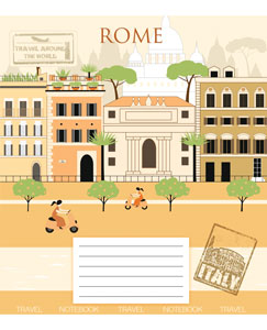 Серія " Painted city " 12 аркушів у лінійку. Обкладинка – чистоцелюлозний картон, 200гр. Внутрішній блок – офсет.