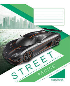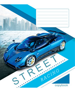 Серія "Street racing" 12 аркушів у лінійку. Обкладинка – чистоцелюлозний картон, 200гр. Внутрішній блок – офсет.