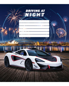 Серія "Car and Nigh city" 12 аркушів у лінійку. Обкладинка – чистоцелюлозний картон, 200гр. Внутрішній блок – офсет.