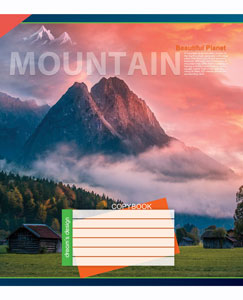 Серія "Гори" 96 аркушів у клітинку. Обкладинка – чистоцелюлозний картон, 200гр. Внутрішній блок – офсет.