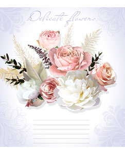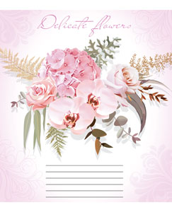 Серія " Delicate flowers " 12 аркушів у косу лінійку. Обкладинка – чистоцелюлозний картон, 200гр. Внутрішній блок – офсет.