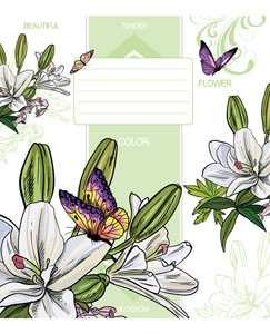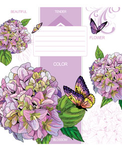 Серія "Tender flower" 12 аркушів у косу лінійку. Обкладинка – чистоцелюлозний картон, 200гр. Внутрішній блок – офсет.